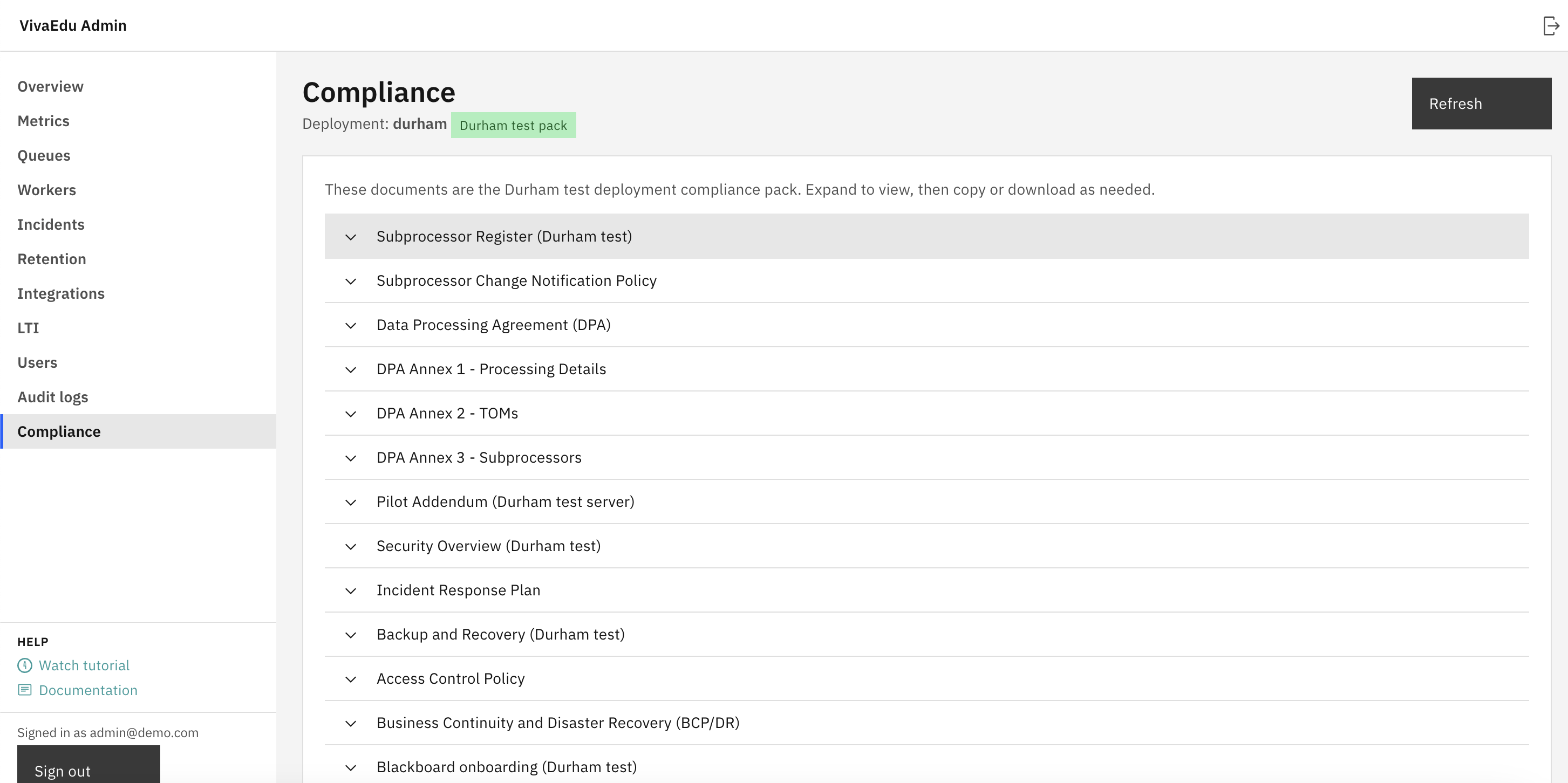 - Configured platforms: shows registered LTI platforms and the most recent launch time
